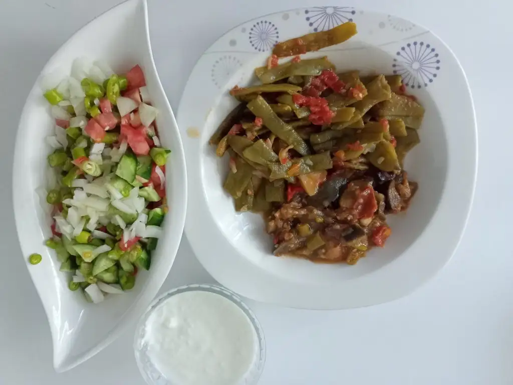 akşam tabağa ek 3 kaşık yemekten, az söğüş yedim