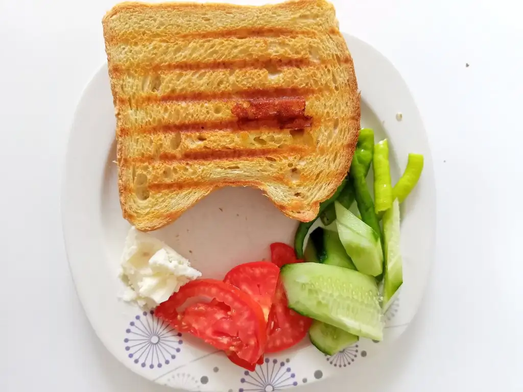 +1 dilim peynir, gorunenin yarisi kadar daha ekmek, 1 yemek kasigi recel , yarim paket zuber cips hic aklimda yoktu resmen kizlar anne ye diye diye yedirdiler 😥