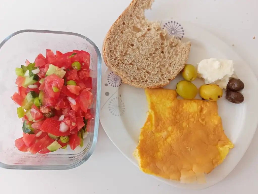 Ek olarak 1 dilim peynir, yufkanin iki katini daha yedim, 1 yemek kasigi recel, 1 incir, 1 dilim karpuz ara ogun yapmicam