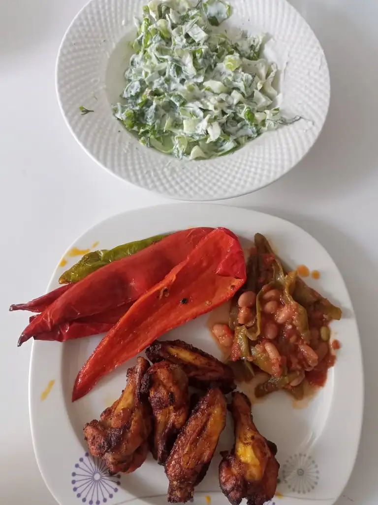 ara ogun yapmadim aksam ek olarak 1 bardak ayran, 3 kasik daha taze fasulye, 1 kanat daha yedim