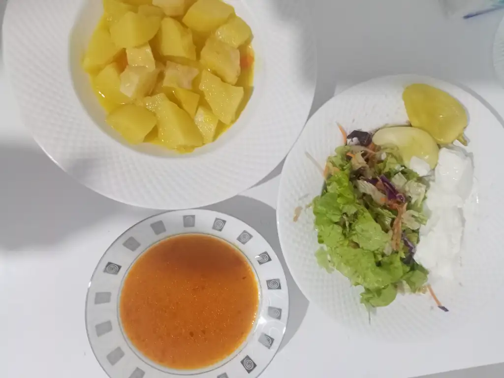 Boylece ilk gunum bitti baya bir acikmistim😊 1 dilim patates fazladan yedim