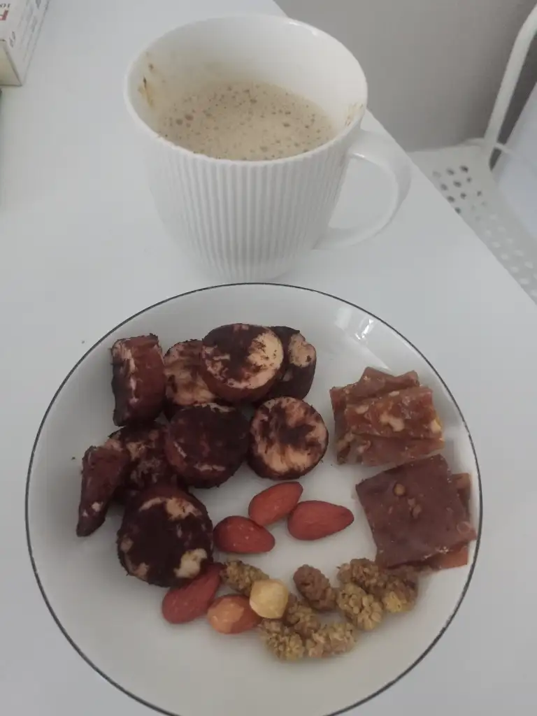 Bugun kahvaltima ek olarak yaklasik 1 tatli kasigi bal yedim 😊 hurmalarida simdi yerim ara ogun olarak