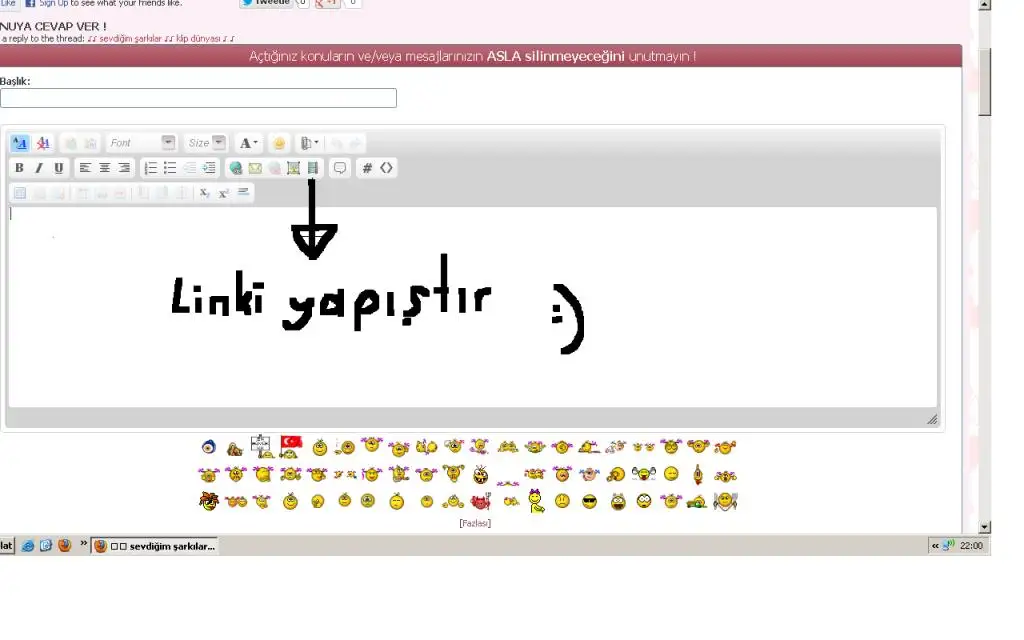 Şimdi yanyana 4 tane simge var ya, onun ağaç resmine benzeyen değil de yanındaki simgeye tıklıyorsun, çıkan yere linki yazıyorsun.