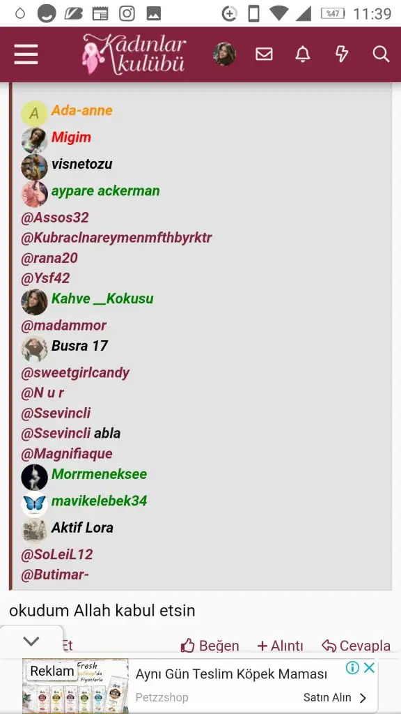 1 senedir gruplardyım yuzde 90 bugun ne dua etmısse olmus