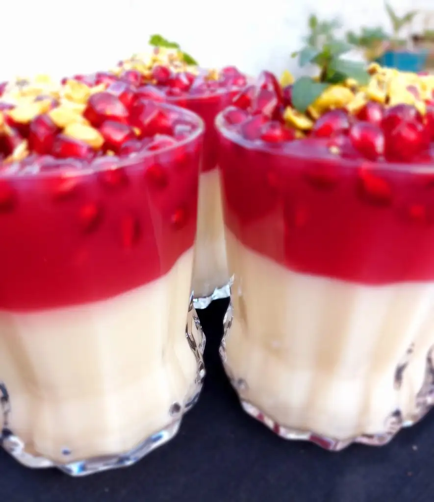 2 su bardağı nar suyu, bir miktar şeker kaynatalim. Nişastayi az bir su ile açalım. Nar suyuna ekleyelim. Koyulasana kadar kaynatalim. Altını kapatalım. Bu aşamada isterseniz ayiklanmis narı sosun icine atabilirsiniz. Ama ben muhallebinin üzerine döktukten sonra hemen narı uzerlerine döktüm, yine sosla karıştı.