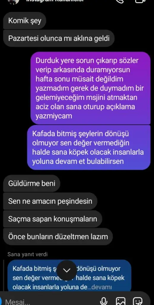 Arkadaşım adına böyle bir konu açmıştık bugün böyle bir yazışma yapıp engellemiş karşı da ki insan , adam her türlü manyak bence hiçbir hatasını kabul etmeyip kafasında kurup onu da sen yapmışsın gibi davranıyor sizce narsist mi bu adam ? Rica etti konu açmam için yorumlariniz onun için kıymetli ( ve eminim bu adam bu engeli kaldırıp yazacak bence umarım kaldırmaz da yazmazsa cunki arkadaşım gerçekten sevgiye aç biri) "birde bu adam dönermiymiş ? "