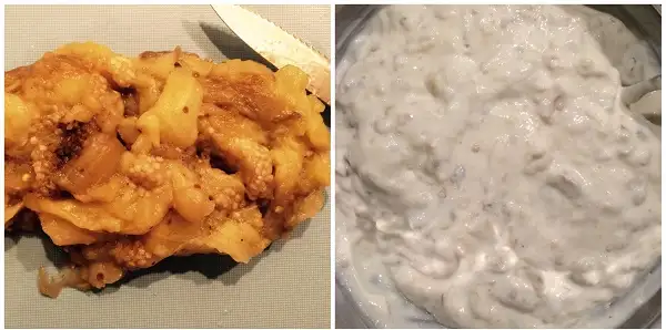 Köz patlıcanı ocakta ve fırında da yapıyorum ama dolabımda mangaldan kalma buzluğa atmak için fazladan közlediğim patlıcanlardan vardı. İlk önce patlıcanı çözüp sarımsak ve yoğurtla karıştırdım çünkü oda sıcaklığına gelmesi gerekiyor. Yoksa yoğurt ve patlıcan soğuk olduğu için makarnayı ve eti soğutuyor.