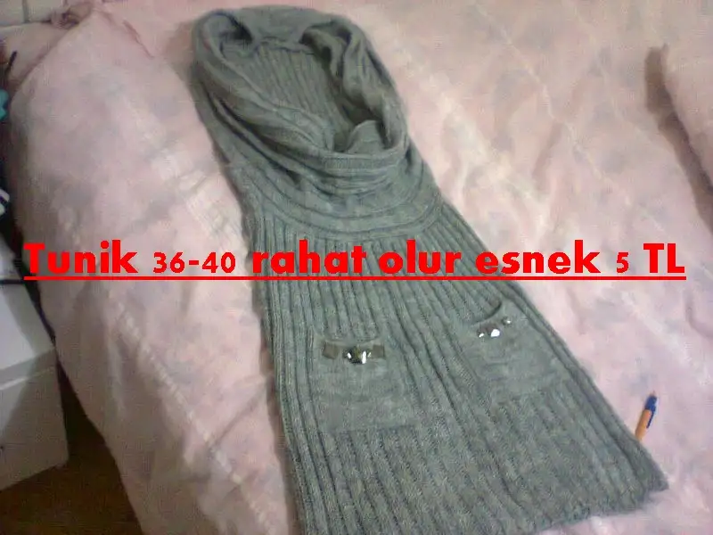 19 - Eki Görüntüle 959861 Eki Görüntüle 959862 gri tunik yaka kısmı dökümlü vücudu sarar 36-40 beden arası rahat olur 5 TL