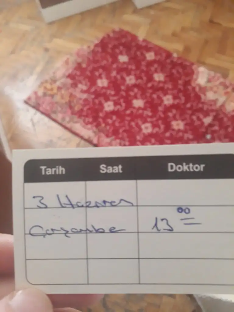 bakin bu da ozelin verdiği randevu karti. bu gun bu saatte gelmemizi soyledi