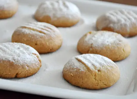 Kurabiyelerin altları hafif pembeleşince pişmiş demektir. Fırında ilk çıktığında çok yumuşak olan bu kurabiyeler soğuyup sertleşecektir.