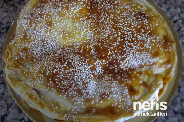 Böreği yapmaya geçiyoruz. 3 kare milföyü önümüze alıyoruz hamur yoğurur gibi yapıp yuvarlak beze haline getiriyoruz unlu zeminde tepsimiz boyutunda açıyoruz. Hatta biraz büyük açalım tepsinin kenarlarınıda kaplıyor bu hamuru yağladığımız tepsiye seriyoruz. Üzerine patatesin yarısını döküyoruz ve eşit şekilde yayıyoruz kaşar peyniri rendesini serpiyoruz. Milföyün 1 tanesini de aynı şekilde yapıp açıyoruz ve patatesli harcın üzerine kapatıyoruz patatesin kalanını yayıyoruz kaşar peyniri rendesini serpiyoruz kalan 2 milföyü de beze gibi yapıp açıyoruz ve üzerine kapatıyoruz kenarlarını birleştiriyoruz yumurta sarısı sürüp susam serpiyoruz 170 derecede kızarıncaya kadar pişiriyoruz.