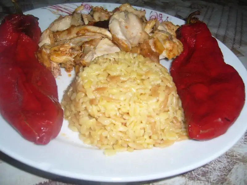 Tuzunu ve suyunu ekleyip kapağını kapatın,Kısık ateşte bulgur suyunu çekene kadar pişirin.Eki Görüntüle 663423 Eki Görüntüle 663424 Soslu tavuk ve közlenmiş biber eşliğinde
