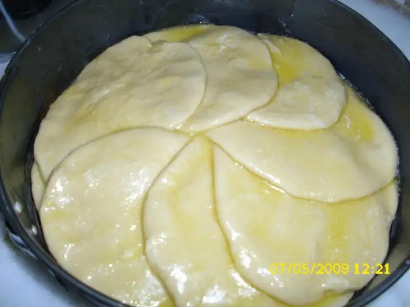 tereyağı hariç diğer malzemelerden yumuşak bi hamur yoğurun 10 dakika dinlendirin 8 parçaya bölün elinizle bastırarak büyütün tereyağına batırıp kalıba sırasıyla dizin çiçek şeklini verin200 derecede pişirin