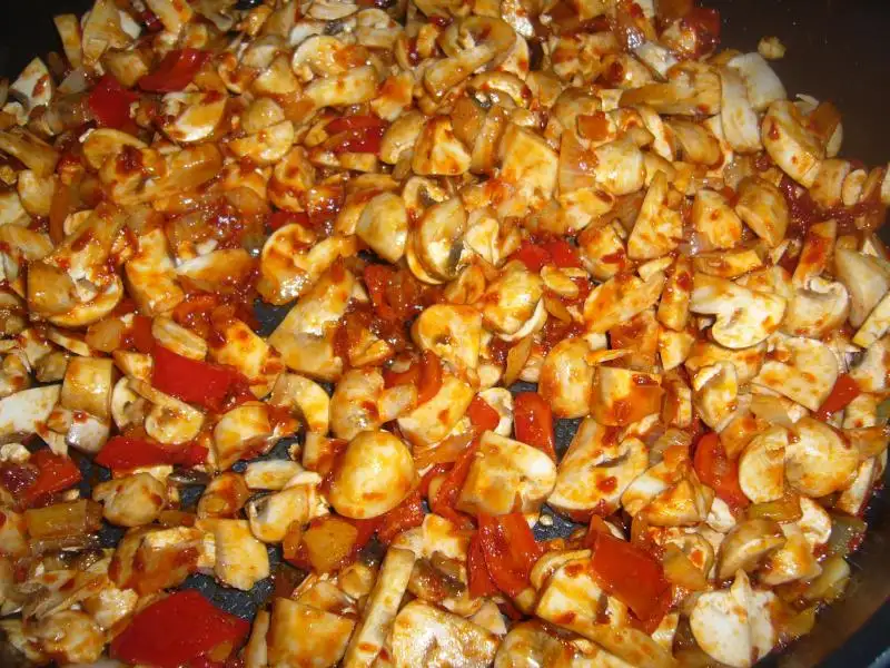 Kurusoğan ve sarmısak yağ ile tavaya alınıp kavrulur..Biraz kavrulunca biberler atılır.Sonra salça eklenip kavrulur.Üzerine mantarlar ve domates (buzlukta ki domatesim bitti yazdan kavanoza yaptığım domates sosu ile yaptım)eklenip kavurmaya devam edilir...Üzerine 1 bardak su karabiber,tuz eklenerek suyu çekene kadar kısık ateşte pişirilir...Servis yapmadan önce yumurta kırılır..Pişirilir Afiyet olsun...