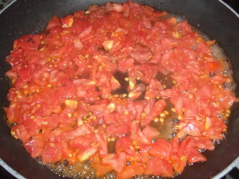Bir tavaya kabukları soyulmuş domatesler konur ,pişirilir.Yağ eklenir ,salça ve 1 çaybardağı su eklenerek kavrulur.Sonra altı kapatılır.