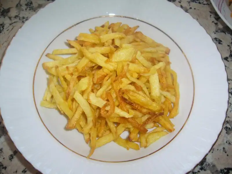 Patatesler ince ince doğranır (yada rendelenir)ve kızgın yağda kızartılır..