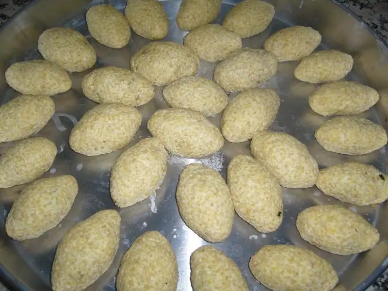 Kalan hamur şekillendirilir..Bir tencereye su konur ve kaynatılır kaynayınca köfteler atılır..Sonra çıkartılır ve biraz soğuyunca yumurtaya bulanarak teflon tavada 1-2 kaşık yağ ile önlü arkalı kızartılır..