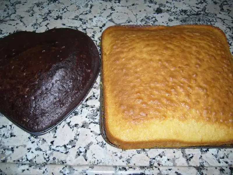 Şeker ve yumurta çırpılır.Üzerine süt,yağ eklenir çırpılır..Sonra un ve kabartma tozu karıştırılarak çırpılmaya devam edilir.Sonra yağlanmış kare kalıp içine malzemenin 2/3 ü eklenir.Kalan harca kakao eklenip karıştırılır ve yağlanmış kalp kalıba boşaltılır ve 175 deecede pişirilir..Pişen kekler soğumaya bırakılır ve kalıptan çıkarılır..