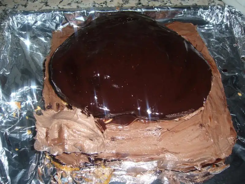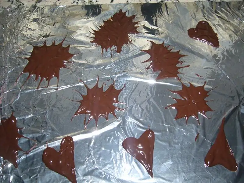 1 paket bitter çikolata benmari usulü eritilir ve alüminyum folyo üzerinde istenilen şekil verilerek donmaya bırakılır..