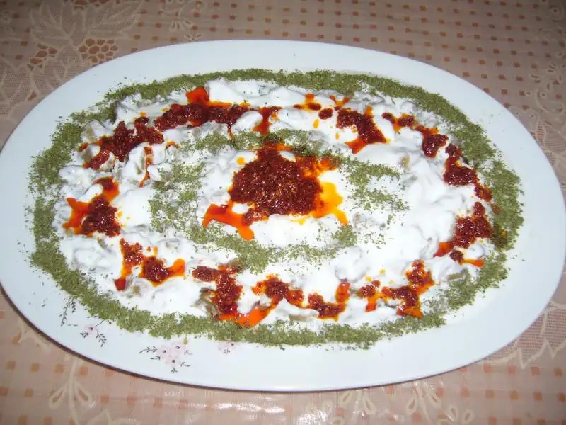 Eki Görüntüle 686309 Eki Görüntüle 686308 2 adet patlıcan fırında közlendi..Pişince soyulup üzerine sarmısaklı yoğurt ekledim...Üzerine yağ ile pul biber ve nane ilave ettim...
