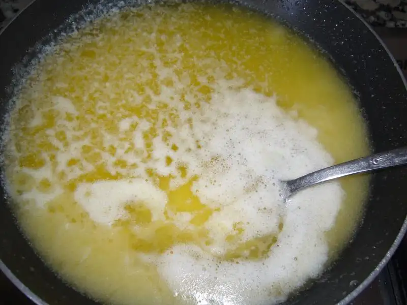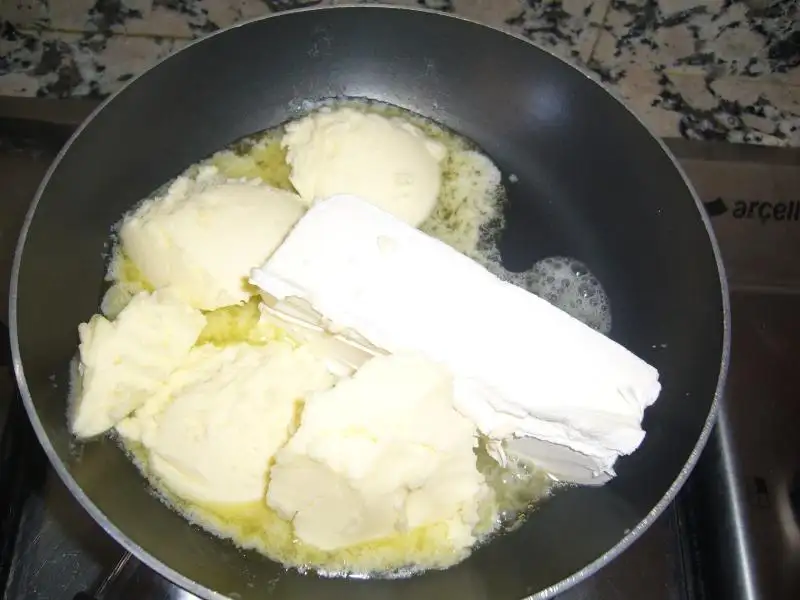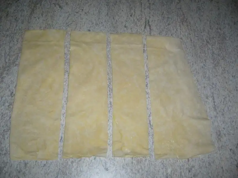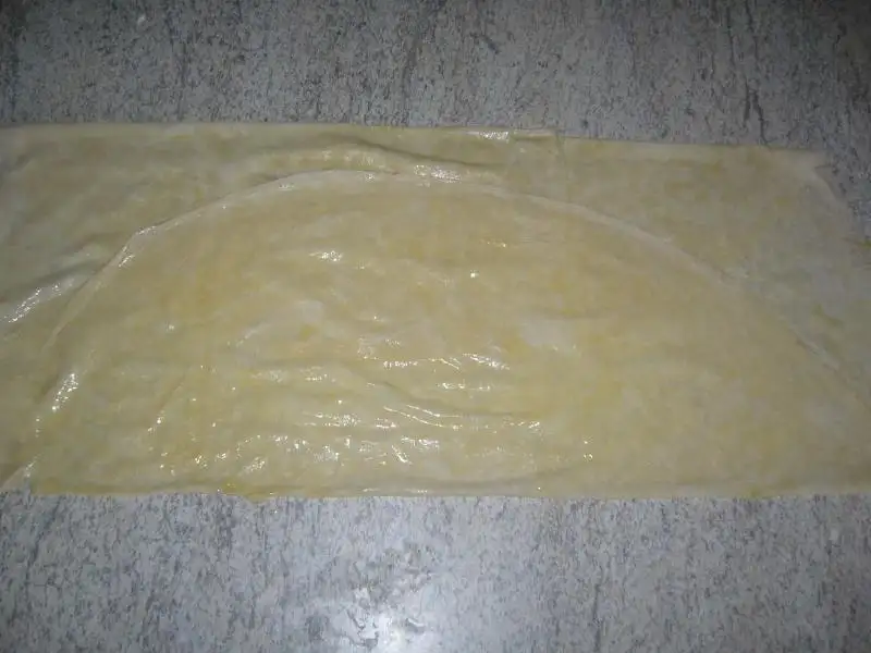 Bir paket margarin veya tereyağını(250gr)Karışıkta olabilir..Eritiyorsunuz.Daha sonra yufkayı serip üzerine azar azar yağ sürüyorsunuz..Bu ölçüdeki yağ 6 adet yufka içindir..