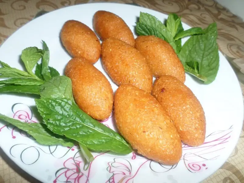 Öncelikle bulguru ılık suyla ıslatın, şişmesi için biraz bekleyin. Unu, irmiği, salçayı, toz biberi,nane ve haşlanmış patatesi ekleyip yoğurun. Hamurun sert olmaması için elinizi ıslatıp yoğurabilirsiniz. İyice yoğurmazsanız hamur iyi olmaz..Yoğurma işlemi bittikten sonra iç malzemeyi hazırlamak için soğanı, maydanozu ince bir şekilde kıyın. Az bir miktar yağla tavada soğanları kavurun. Ardından kıymayı maydanozu kavurun. Kıyma sulu ise suyunu çekinceye kadar kavurun. Hazırladığınız hamurdan ceviz büyüklüğünden biraz daha büyük parça koparıp elinizi ıslatarak çevirerek ve hamuru sıkıştırarak (biraz zordur) oyuk açın. İçine kıymayı koyun ve elinizi ıslatarak sıkıca kapatın. En son olarak sıvı yağda kızartın.