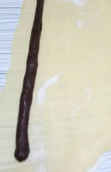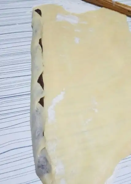Yapılışı : un, kabartma tozu ve maya hariç diğer malzemeleri karıştırın, daha sonra maya, kabartma tozu ve un yavaş yavaş eklenip iyice yoğurulur. Sonra bu hamur 5 eşit bezeye ayrılır. 4 beze başka bir kaba konur. Kalan 1 beze üzerine kakao dökülüp yoğurulur. Sonra da bu beze 4 eşit bezeye bölünür. Sonuç olarak 4 beyaz, 4 kakaolu hamur olacak.