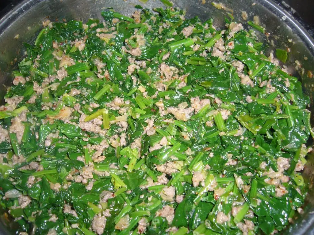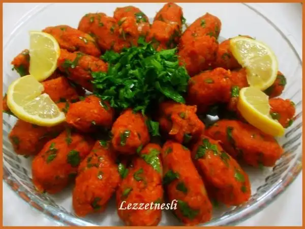 kuru soğanıda ince ince kıydıktan sonra zeytin yağının içine atılır soğanlar kızardıktan sonra 1 yemek kaşığı kadar pul biber ilave edilir ateşten alınır ve yoğurmuş olduğumuz köfteye önce yeşil sebzeler sonrada yağı dökülür (yağın sıcak olması önemlidir ssebzelerin yumuşamasını ve köfteden ayrı gayrı durmasını önler)