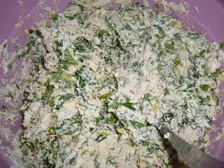PEYNİRLİ HARÇ İÇİN:Rendelenmiş peynir veya çökelek ,yeşil soğan,maydanoz,pul biber,tuz,tereyağı,zeytinyağı karıştırılır...