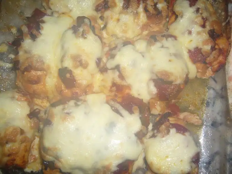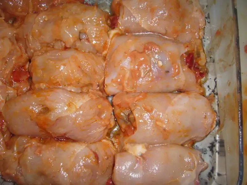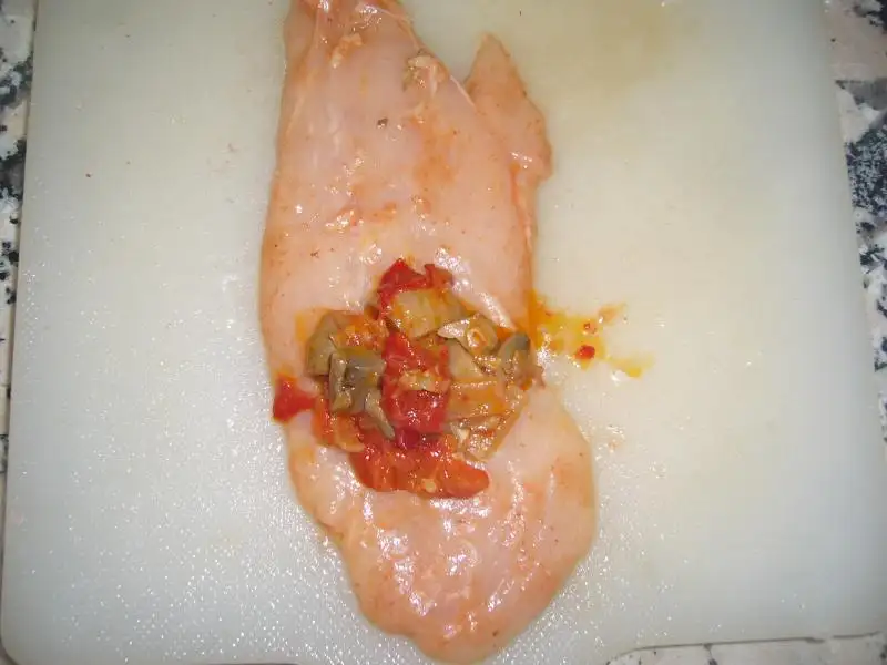 Öncelile tavuk göğsü uzun ince şekil de kesilir ve dövülür...Sonra yoğurt,kekik,2-3 kaşık zeytin yağı,salça ile soslanarak bekletilir...Tavaya soğan sarmısak doğranıp üzerine yağ eklenerek kavrulur sonra biber ve mantarlar eklenir ve küçük küçük doğranan domatesler ilave edilir..tuz eklenerek pişirilir ..Sebze sulanıyor suyunu çekene kadar..Sonra tavuklara üzerine soğutulmuş harç eklenerek sarılır ve pişme kabına alınır...Bütün tavuklar bitince kalan malzeme üzerine dökülür ve yarım çay bardağı su eklenerek pişirilir..fırından çıkmaya yakın kaşar rendesi eklenrek kaşarla eriyip kızarana kadar pişirilir...AFİYET OLSUN