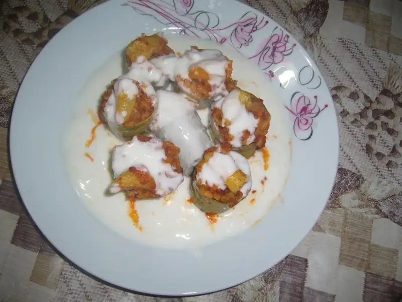 Ama sen değişik yapmışsın ben salçalı sosa bulamıyorum tençerenin tipine koyuyordum bide kabakları lezetlentirmek içine tuz ve kara birle sürüyodum bu daha mantıklı geldi kabagın daha lezzetlendirir