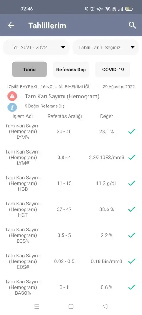 Anladm çok pardonHemogramdan bakılmaz ben o çıkmışsa onun sonucuna bakim değerler nasıl diye demişimdir yanlış anlamissiniz