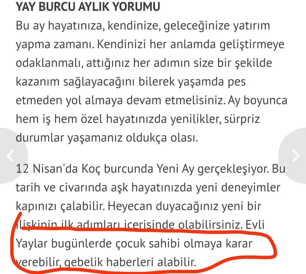 Akrep burcuyum ben onun içinde sene başında matt ayında gebelik var diyordu ama şuanlık tık yok