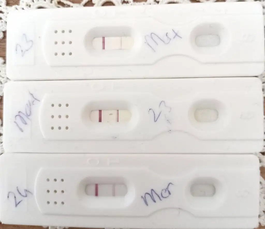 Benim bu şekilde çıktı bugün dün daha koyuydu dün yumurtlama oldu mu yoksa yanılıyor muyum bilmiyorum en üstteki dün öğlen ortadaki akşam en alttaki de bugünBugün yapamadım evde olmadığım için akşam yaparım nasıl çıkacak bakalım