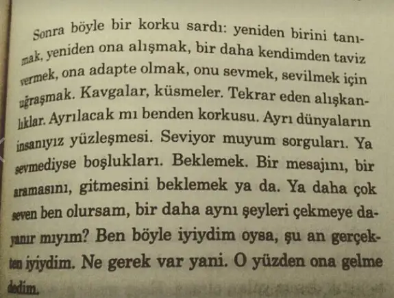 o kadar seviyordum ve mutluydum ki onunla tüm kusurlarını görmezden geldim ve aradım onu o zaman..kendisi de pişmandı, defalarca ailesine hiçbir şeyimizi anlatmamasını söyledim, hatta kendi kuzeni, uzaktaki bir akrabası da söyledi ve uyardı.. fakat huylu huyundan vazgeçmedi malesef..beni düşman belledi heralde kafasına taktığı korktuğu her durumu ve herşeyi ailesine anlattı, onlar ne derse onu yaptı ..sonuç yine hüsran.. ''babam sürekli laf sokuyor evlenmemi istemiyor, bu çocuk da evlenicek gidecek artık bize bu çocuktan hayır gelmez vs diyor 've olumsuz etkileniyorum'' dedi..