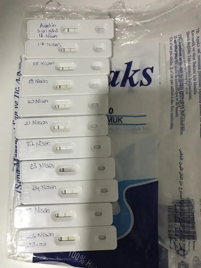 Merhaba canım ben de senin gibi ovulasyon takibi yapıyorum 13 nisan adet tarihimdi 16 sından beri yapıyorum ben de laboquick marka kaset test aldım netten onu kullanıyorum dün bel kasık vs ağrılarım geceye doğru artınca 23.00 gibi testi tekrarladım ve bir gebenin günlüğü İnstagram sayfasına atıp sordum yumurtluyorsun bugün ve 4 gün üst üste ilişki dedi bakalım normalde testlerimi 15.00 da yaparım bugün ne çıkacak bakalım dün gece yaptığım senin koyu olanla aynı olunca görüntü olarak haber edeyim dedim inşallah faydam olmuşturKızlar merhabalar geçtiğimiz 2 ay telefon uygulamasıyla yumurtlama takip etme hatası yaptım. Bu ay kaset ovü testi aldım. 3 nisanda adet oldum. 8 nisandan beri her gün yapıyorum 15 nisanda biraz koyulaştı ama çok değil. Bşr de 23 nisanda. Acaba kaset testlerde koyulaşma tam olmuyor mu ? Size testlerimi atacağıö. Bunarada bat a 13 gün var şu an. Adetim 30 gündü ama geçen ay 33 oldu 3 gün gecikti. Her yere yazdım. Siz aktifsiniz nolır bana da el atın hala mı yumurtlamadım ? Üzerinde tarih olmayan tek olan 15 nisan.