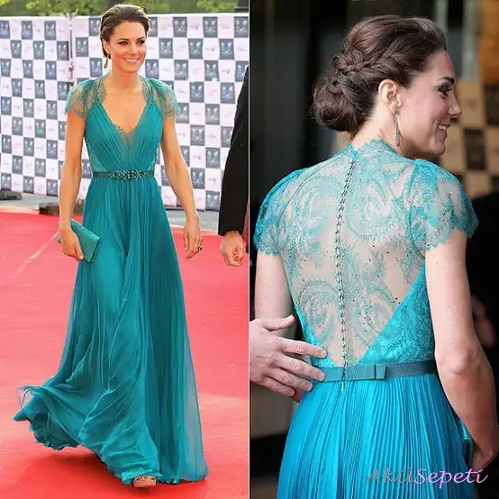 Bence birinci elbise harika. 2. foto da aynı elbisenin arkadan görünüşü. Prenses Kate'in moda zevkine zaten diyecek yok:)