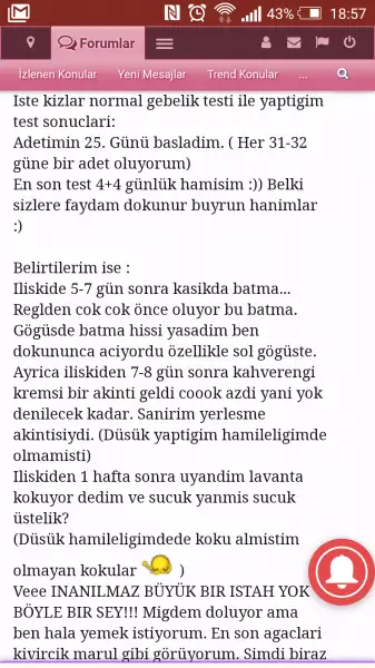 InshAllah kuzum:)))))ilk belirtisi hepinizde var leke deyme:))))))kuzum herkesde cabuk cikacak die bishey yok birinde erken yerleshir birinde gec yerleshir hepimiz ayni gunde yumurtlamiyoruz malum:))))Bazı yaşadıkları bana benziyor bende 8 gün dü dün kan yaptım 2 yaptm bence o o zaman kan verseymiş ckarmış benmde geçen kimyasalda gelmedi bu sefer geldi veeee bugun noldu biliymsnz daha yeni kaşar almıştk agzma aldm bir tadı değişik geldi ayıptr sölemesi ckarttm agzmdan anlamdm tat alamadm ilk ya