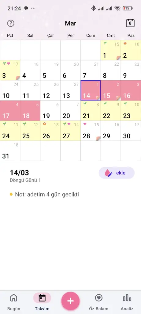 Sizin gününüz geçmemiş henüz 2 yada 3 gününüz var takvim döngü uzunluguna göre otomatik ayarlamış o ayarı düzenleyin gecen ay 28 gün adet olmuşşunuz
