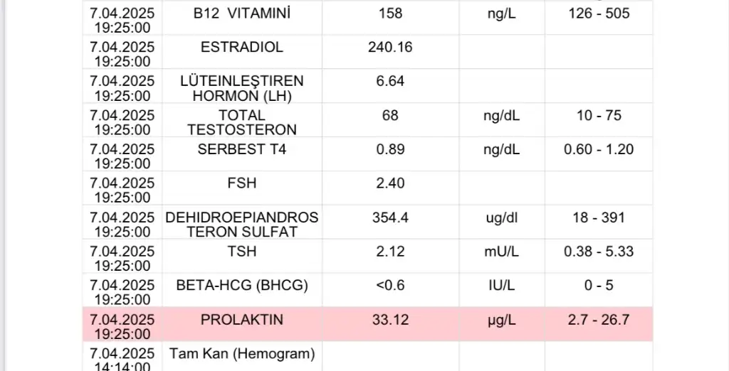Yok adet değildimProlaktin yüksek canım o düşük olmali peki adetken mi verdin