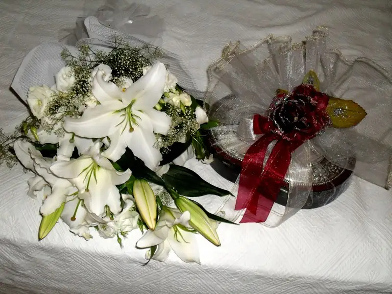 şimdi öncelikle misafirler geldi kapıda karşıladım en son aşkm girdi çicekle :) çiçeğimi teslim aldım.sevdiğim çiçeği bilir ben gül sevmem. ondan buketim farklıydı :71: :) sonra selamlaştık ve ben odaya onlar salona. kız arkadaşım ve abimin eşi yardımcı oldu mutfağa genelde. bana da kahveye kadar çıkma sen dediler :53: içecek servis ettiler. bekliorum sohbet koyulaşıo içerde kahkahalar felan .. meraktan çatlıorumm :1: sonra kızlar mutfakta ben odada.. k.pederimden bi ses.. işte oğlumuz borayla kızımız yaseminin.... hemen peşinden babam: e hayırlı olsuunnnn :) boranın el öpüşü.. kayın validem : esatcım bi kızı görseydik :44: :60:çikolata dağıttım sonra iyi dilekleri kabul ettik falan :nazar: