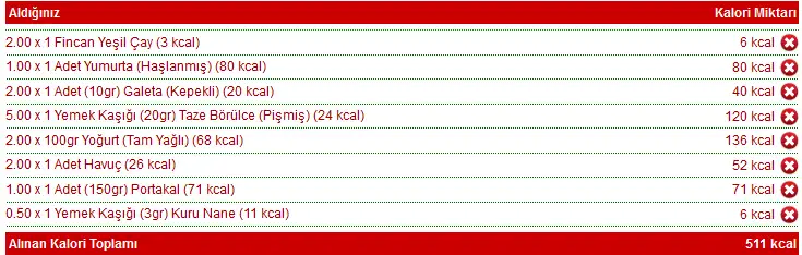 sitede bulamayacağımdan ona yakın bir şeyi arattım..ama benim yediğim salçalı, bildiğin normal yemek..tahminimce toplamda 600 kalori almışımdır bugün..akşam slim in 6 yapmaya çalışacam..bugün zaten 40 dakika yürüdüm yine dışardaydım çünkü.