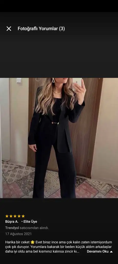 Manken fotoğrafları kötüydü yorumlardan aldım ama sorun olmaz umarım, bir de bu ceket ve benzer bir pantolonum var. İçine beyaz bir askılı giyeceğim giyersem.