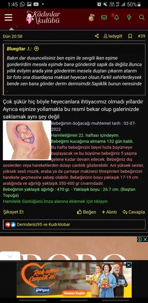 Yani bir kadın partnerinin de olsa bu görseli komik veya kötü bulabilir diğeri de tahrik edici. Hiç kimse herkes sevmeli hoş karşılamalı demedi. Ama sevenlere yukarıdaki sözleri sarf etmek ayıptır, çirkindir. Bu arada gene yazmıştım iki ay önce genital lazerde yanık oluştu. Belirli aralıklarla foto çektim takip için geçiyor mu diye. Bu muhabbet üstüne baktim cidden silmeyi unuttuğum bir tane buldum. Adamın da böyle bir durumu olabilir bir şey çıkmıştır ne biliyim. Genital olunca mevzu iy miy denmesini anlamıyorum ergen değiliz. Kiz da açıkça konisabilmeliydi niye cekmistin diye. Ben olsam sorardım. Utaniyor hem hem de aileme mi anlatayım diyor.