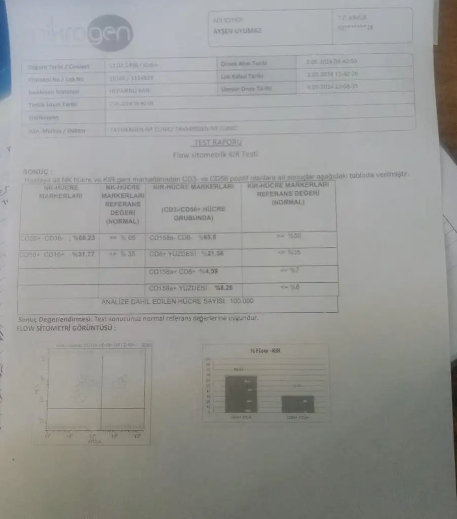 Merhaba mesajınızı yeni gordum. Olumsuz bir transfer süreci gecirince buraya pek girmek istemedim. NK hücre paneli diye geçiyordu. Hatta test sonucunu atmislardi. Bir şey çıkmadığını söylediler.
