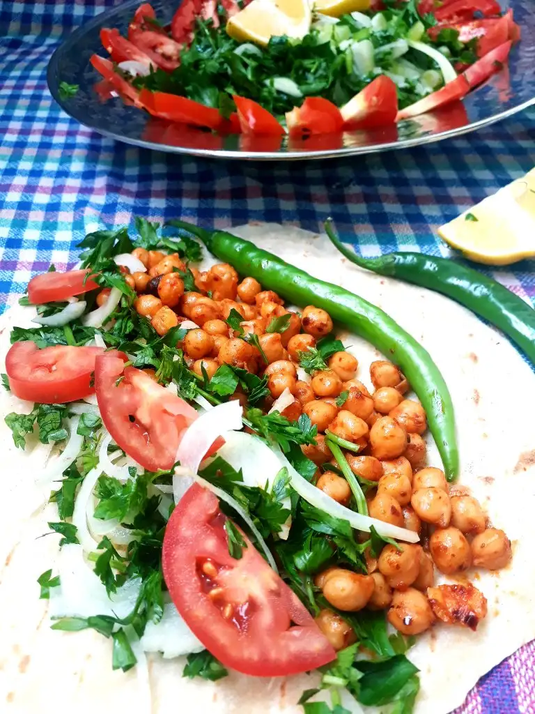 Gaziantep'de kahvaltı sofralarının en güzel yemeğini yaptım bugün. Nohut dürüm Antep'de genellikle sabah kahvaltısında yenir.
