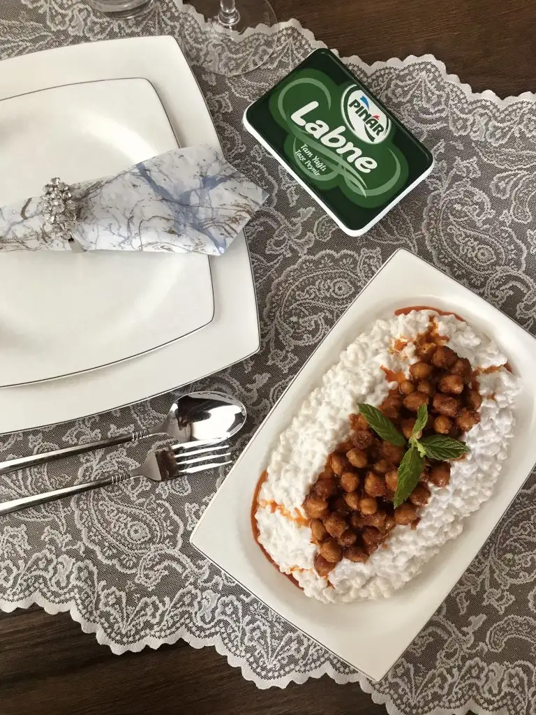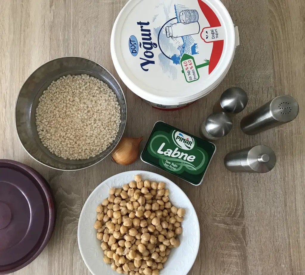 Sarımsak, yoğurt ve Pınar Labne'yi karıştırıp soğuyan buğdayları ekliyoruz. Alt kısım bu kadar.
