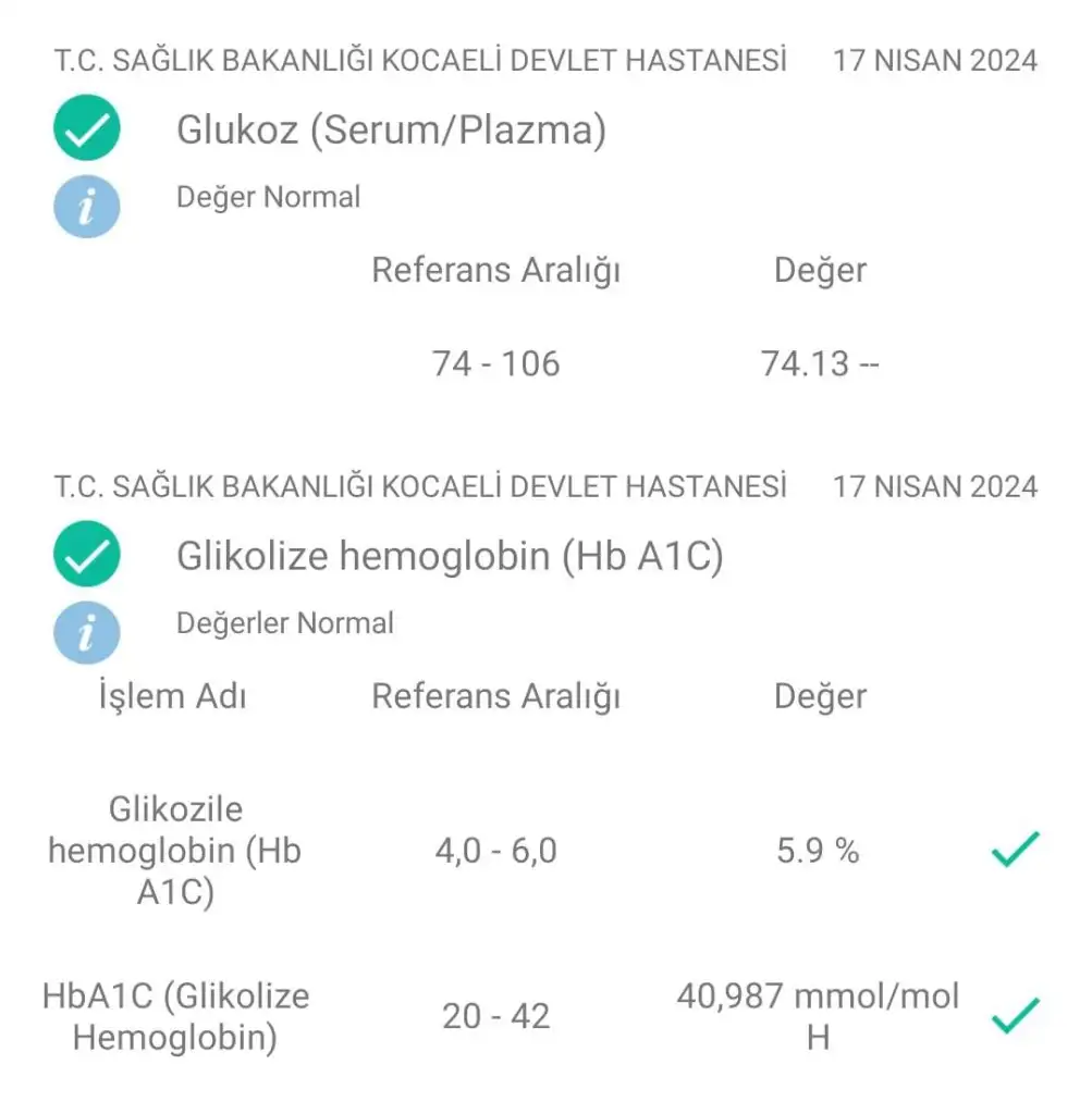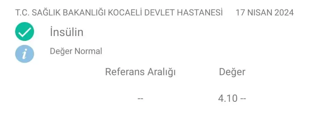 Evet evet bakilmis. Dediğim gibi şekere dair tüm testleri istemiş Dr. Geriye dönük 3 ay olana bile bakmis. Hepsi normal. İnsülin 4.10 mesela. Sonuçlara göre normal aralikta görünüyor, bilemedim.