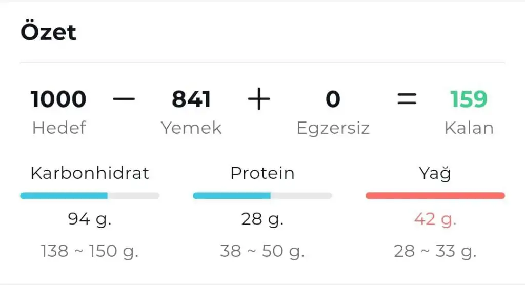 690 kalori açık bıraktım totalde 634 kaloriymiş yediklerim