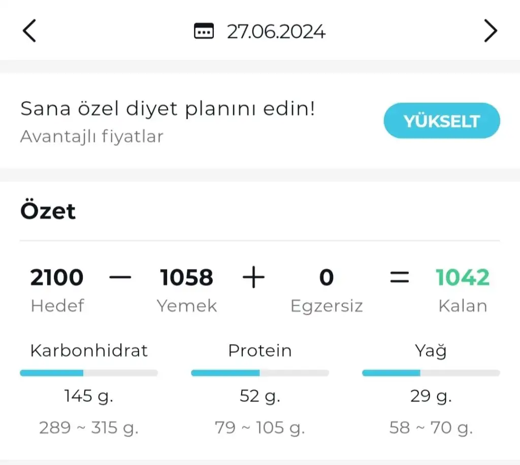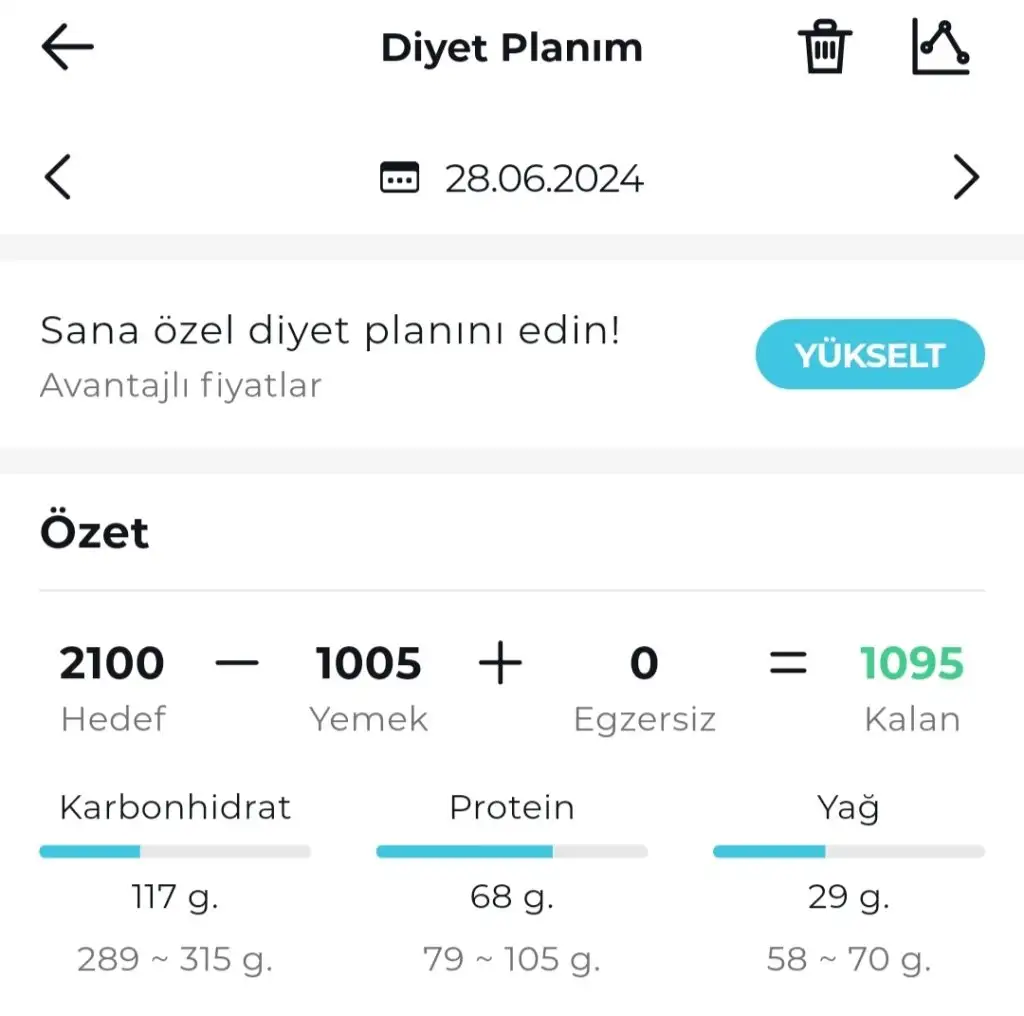 Tek öğün yapıyorsun bugün arada şaşırtmak iyidir egzersize basladın sanırım harika yavaş yavaş arttırırsan muhteşem olurBugünkü menüm